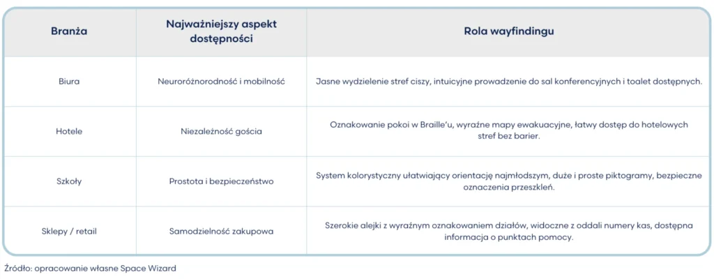Dostępność ma różne oblicza w zależności od funkcji budynku. Oto jak wayfinding wspiera inkluzywność w konkretnych branżach: